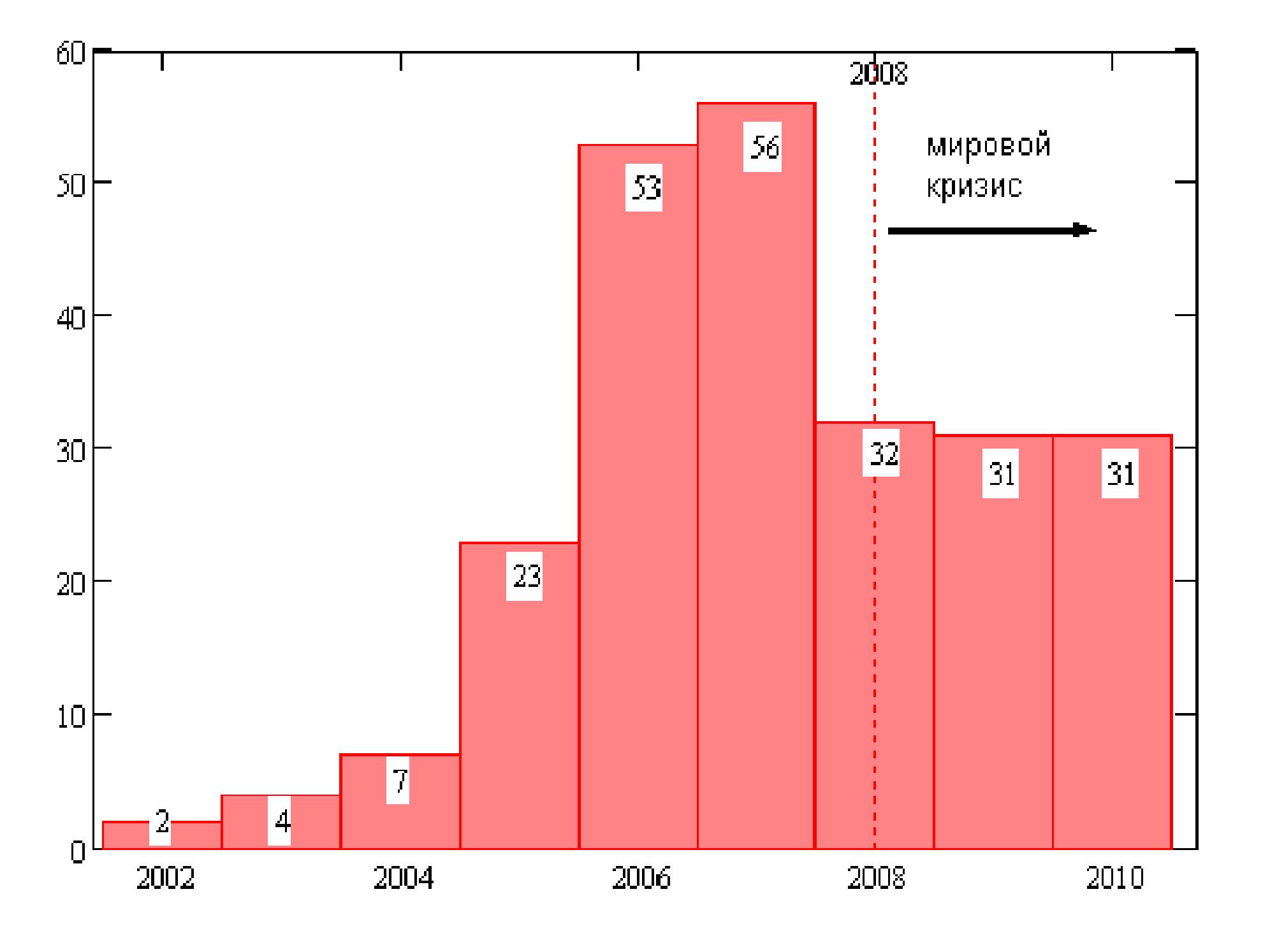 Объем продукции, шт., только Модули до 2008г., Контроллеры с Модулями плюс отдельные Модули для ЗИП с 2009г. (подробнее см. на странице Документация: "Популярность С5, рентабельность продукции, цены")"СКАТ ВЧ-2" для местного нагрева корпуса атомной подводной лодки