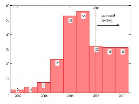 Объем продукции, шт., только Модули до 2008г., Контроллеры с Модулями плюс отдельные Модули для ЗИП с 2009г. (подробнее см. на странице Документация: "Популярность С5, рентабельность продукции, цены")"СКАТ ВЧ-2" для местного нагрева корпуса атомной подводной лодки